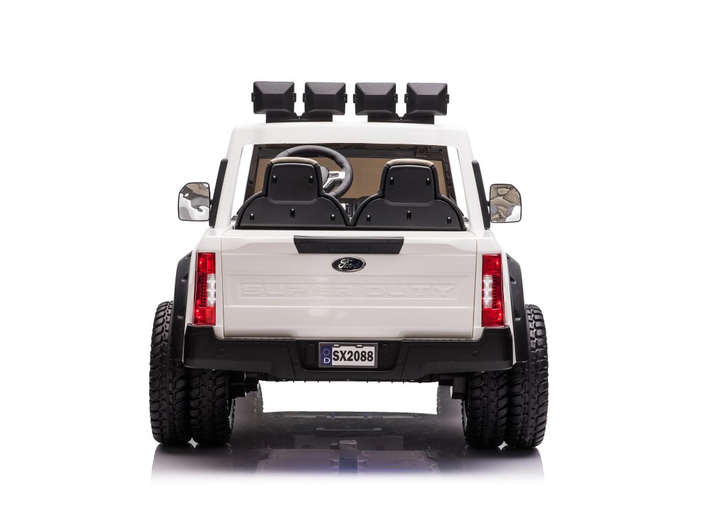 Samochodzik elektryczny to licencjonowany produkt marki Ford. Samochodzik elektryczny Ford Super Duty z czterema mocnymi silnikami elektrycznymi 45W i baterią 12V 14Ah. Duże piankowe koła EVA zapewnią komfortową jazdę. Tylne koła są podwójne, co pomoże samochodzikowi pokonywać teren i nieutwardzone nawierzchnie.