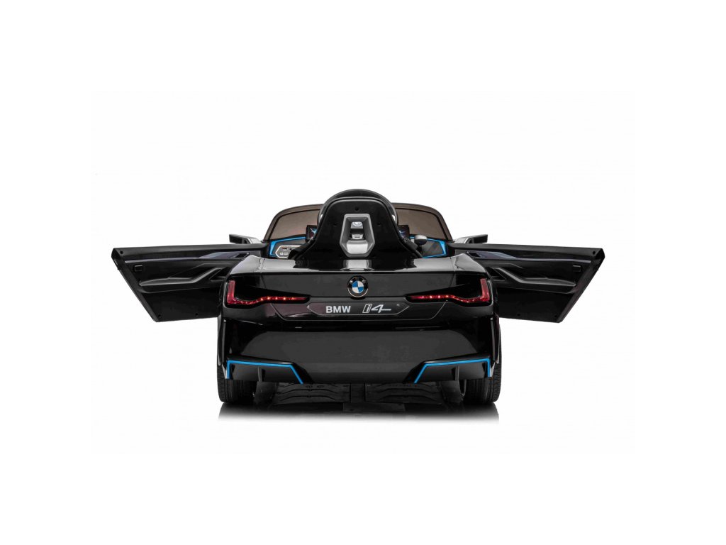 Dziecięce licencjonowane autko BMW i4 z bogatym wyposażeniem i nowoczesnym designem. Wyposażone w piankowe koła EVA, które są ciche i nie przeszkadzają podczas jazdy.