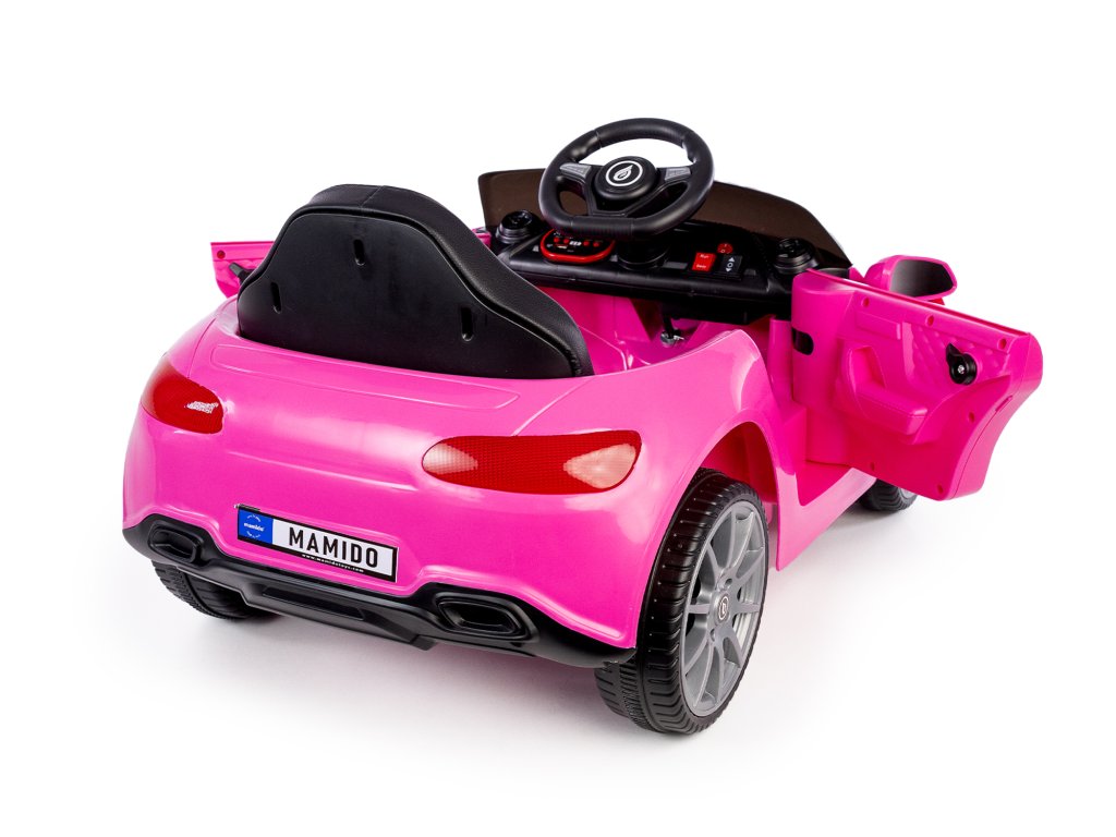 Wnętrze autka jest wyposażone w siedzenie z ekoskóry z paskami bezpieczeństwa, panel muzyczny z wejściami AUX, MP3, USB oraz przyciskami z melodiami. Na drogę doświetlają przednie światła LED.