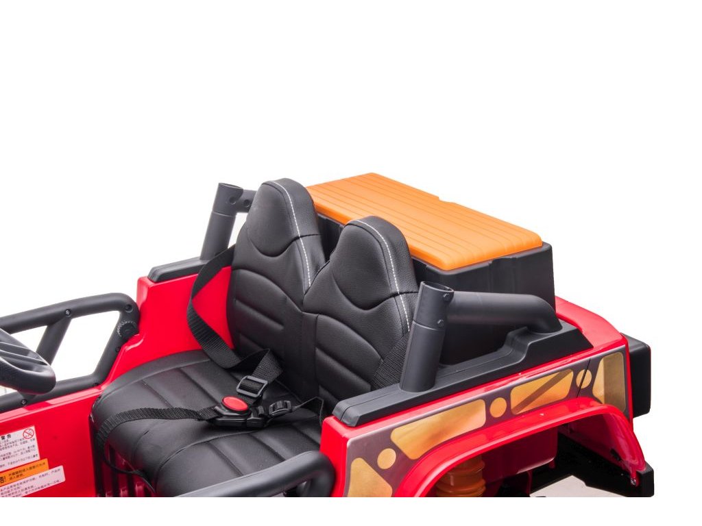 Autko na akumulator jeep 4Speed posiada cztery silniki o mocy 200W oraz baterię o pojemności 24V 7Ah. Autko wyposażone jest w panel muzyczny z wgranymi melodiami, wejścia USB oraz Bluetooth. Na kierownicy znajduje się klakson. Autko posiada przednie światła LED. Można je uruchomić za pomocą kluczyków, co od razu wywołuje charakterystyczne dźwięki silnika.