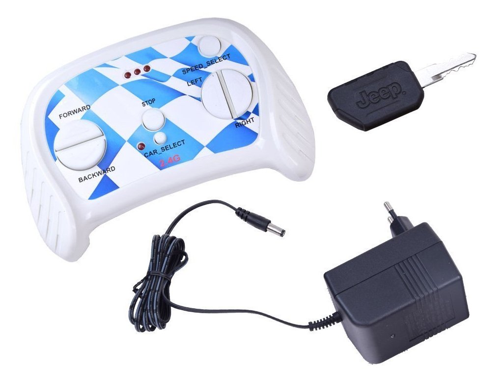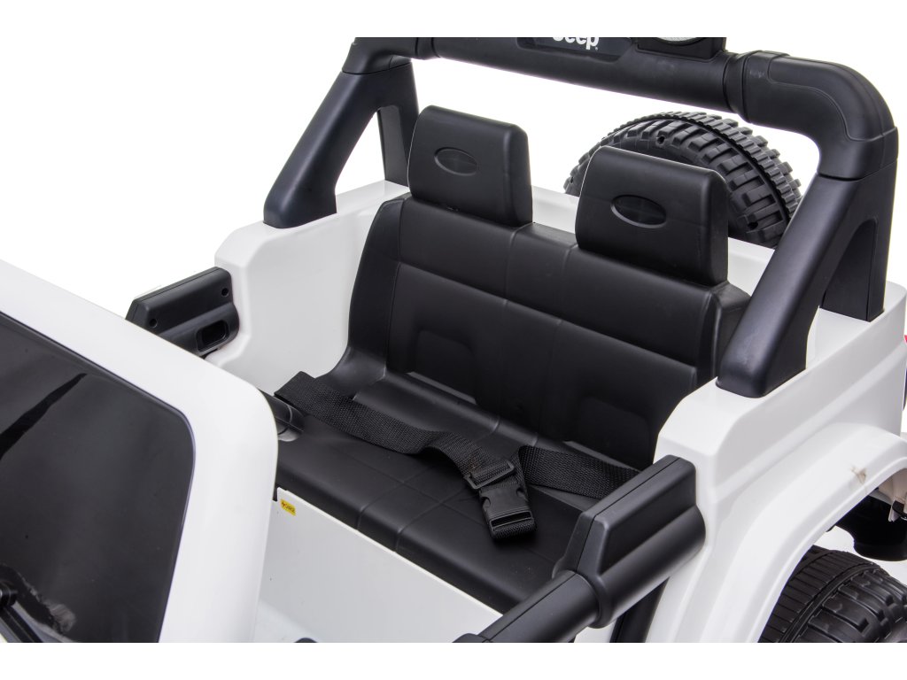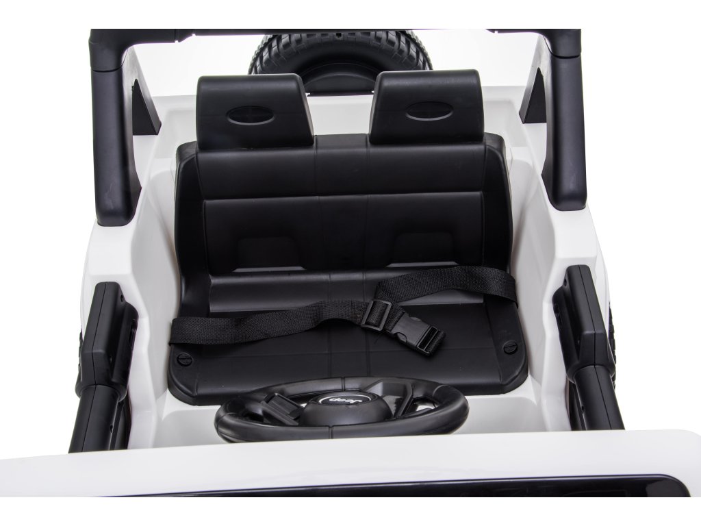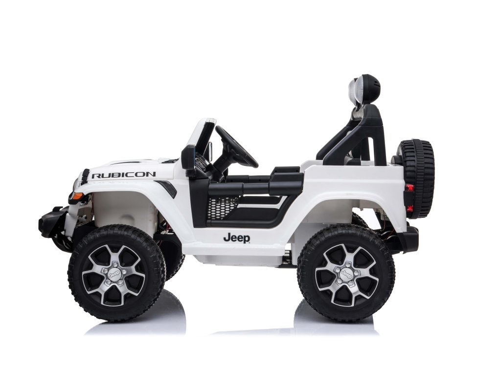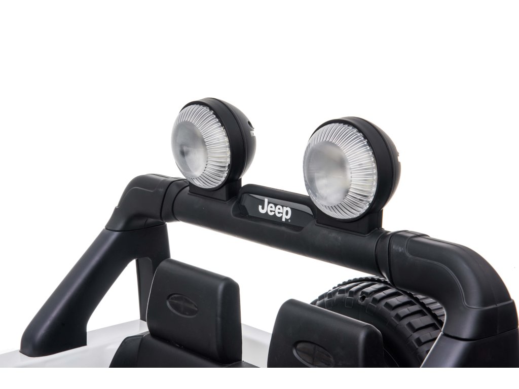 Jeszcze większą radość z jazdy zapewnia panel audio wyposażony w radio FM, wejścia AUX, SD i USB. Autko ma efekty świetlne – przednie i tylne światła LED. Jeep Rubicon uruchamia się za pomocą metalowych kluczyków. Komfort kierowcy zwiększa wygodne, profilowane siedzenie z ekologicznej skóry oraz miękkie piankowe koła EVA, które są ciche i dostosowują się do jazdy po różnym terenie.