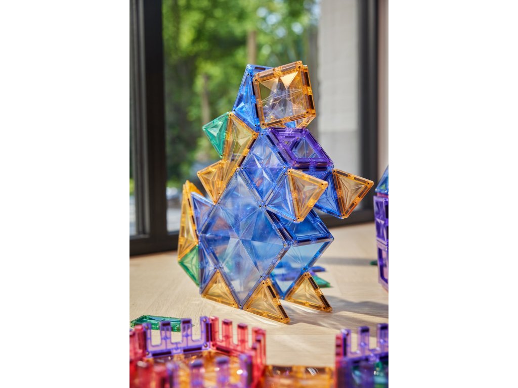 Zanurz się w świecie kreatywności dzięki rozbudowanemu zestawowi Cleverclixx Duży zestaw kreatywny. Ten 210-elementowy zestaw magnetycznych klocków w delikatnych pastelowych kolorach to idealny wybór dla dzieci, które chcą budować na dużą skalę – i idealny do zabawy rodzinnej lub grupowej. Dzięki bogatej reprezentacji różnych kształtów dzieci zdobywają praktyczne doświadczenie z geometrią, planowaniem przestrzennym i podstawami konstrukcji.