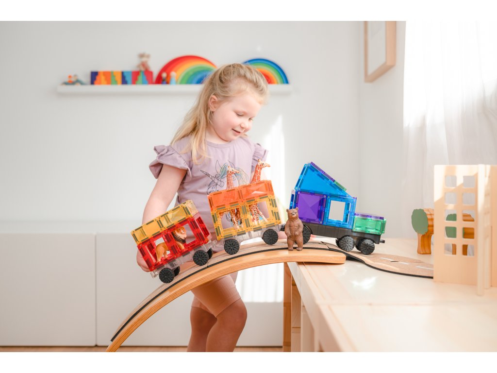 Odkryj świat nieskończonej kreatywności z magnetyczną układanką z kółkami w pięknych tęczowych kolorach! Ten zestaw jest idealny dla wszystkich małych budowniczych, którzy uwielbiają auta, ciężarowe pojazdy i przyczepy. Dzięki różnorodnym możliwościom budowania dzieci rozwijają zarówno drobną, jak i dużą motorykę, zdolność do koncentracji, wyobraźnię oraz cierpliwość. Obserwuj, jak tworzą własne auta, karetki, wozy strażackie, a nawet pociągi i samoloty. Niezależnie od tego, czy budują samodzielnie, czy razem z rodziną i przyjaciółmi, zawsze czeka ich czas pełen zabawy! Ten zestaw zawiera wszystko co potrzebne do budowy pojazdów – na przykład jedną dwustronną szarą bazę transportową, dwie przezroczyste ruchome bazy z prawdziwymi gumowymi kołami oraz szeroką gamę magnetycznych elementów o różnych kształtach. Dzięki temu, można tworzyć nieskończone kombinacje i rozwijać nie tylko kreatywność, ale również umiejętności konstrukcyjne. Zestaw jest doskonałym uzupełnieniem dla innych układanek Connetix, jak na przykład Magnetycznej układanki - tęczowy startowy zestaw. Unikalny ukośny design elementów gwarantuje trwałość i tworzy piękne efekty świetlne. Wszystkie elementy wykonane są z wysokiej jakości, nietoksycznego plastiku ABS, bez BPA i ftalanów, są bezpiecznie uszczelnione i nitowane, więc dzieci mogą się bawić bez obaw.Dlaczego wybrać magnetyczną układankę Transport Pack Connetix Tiles?