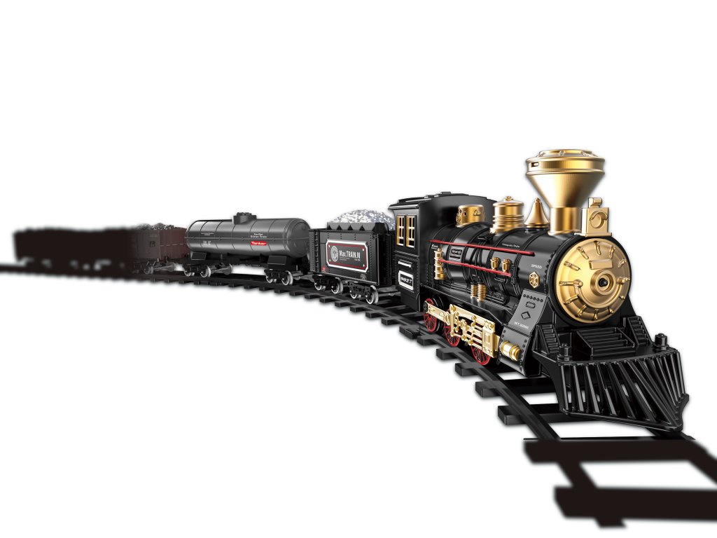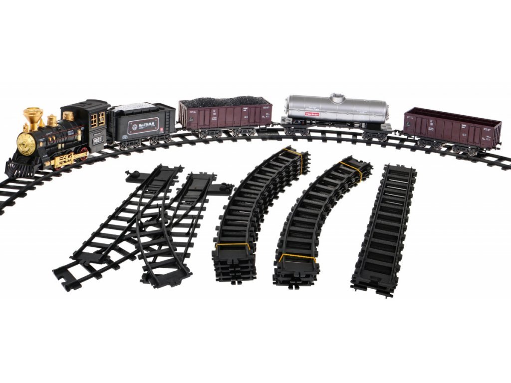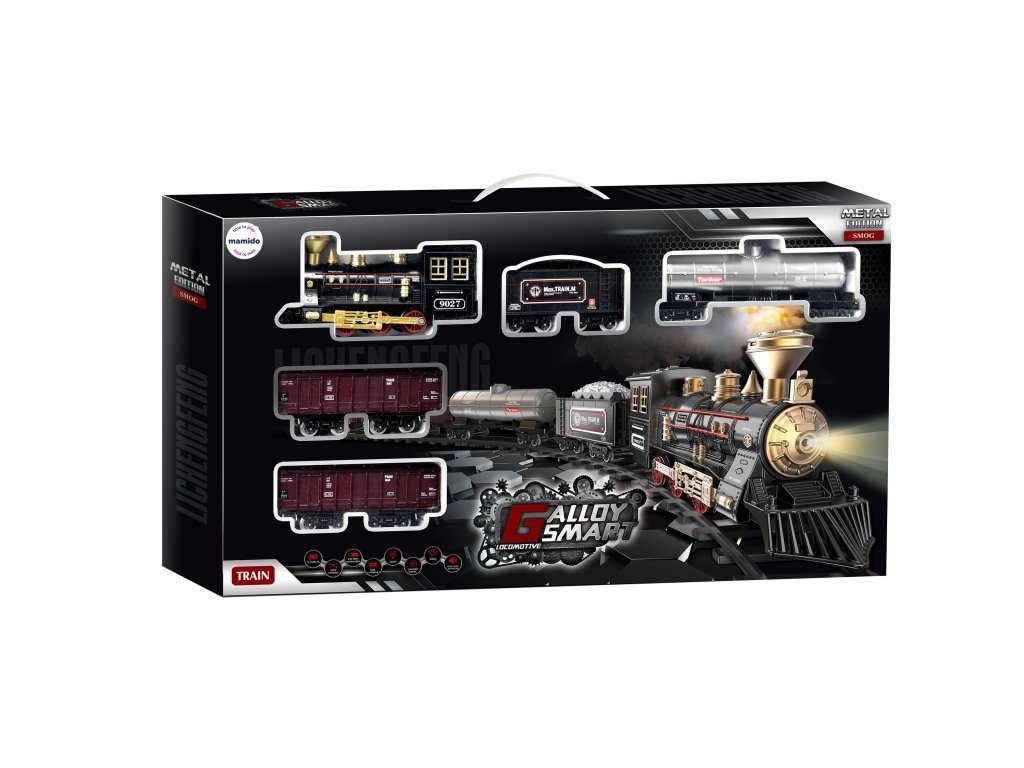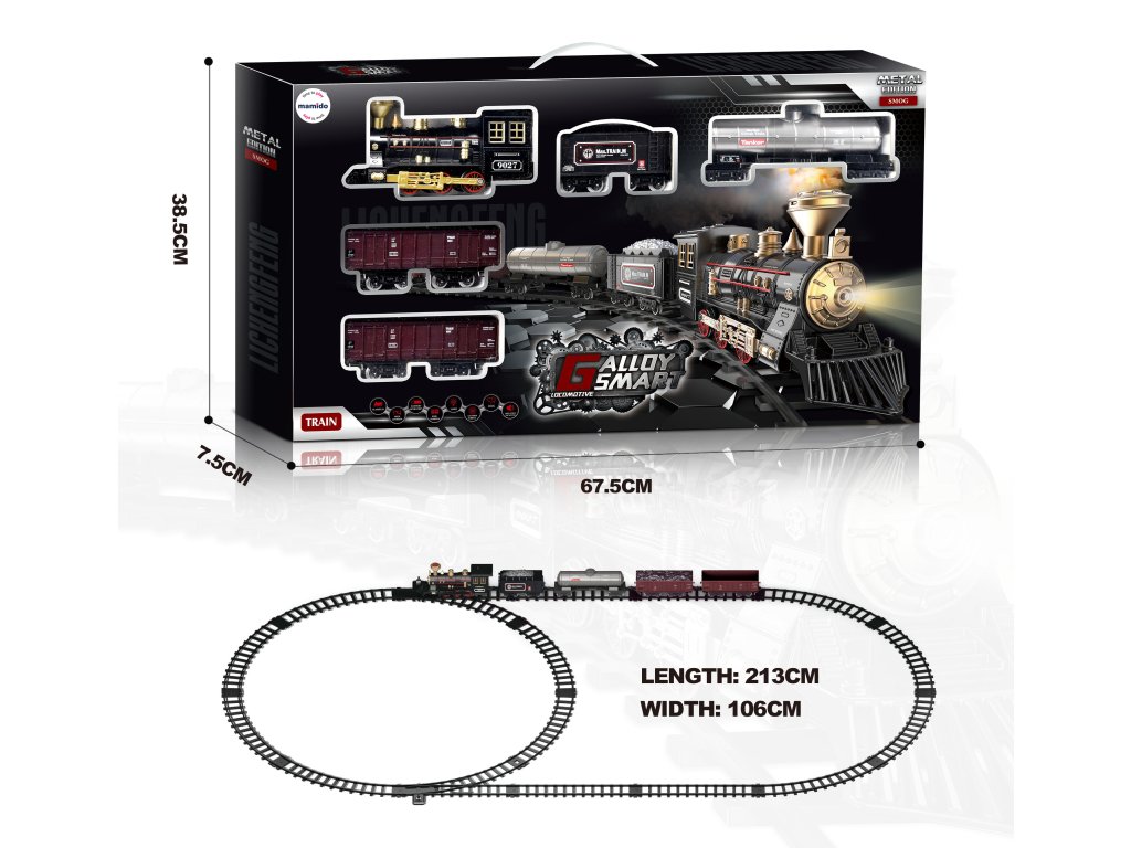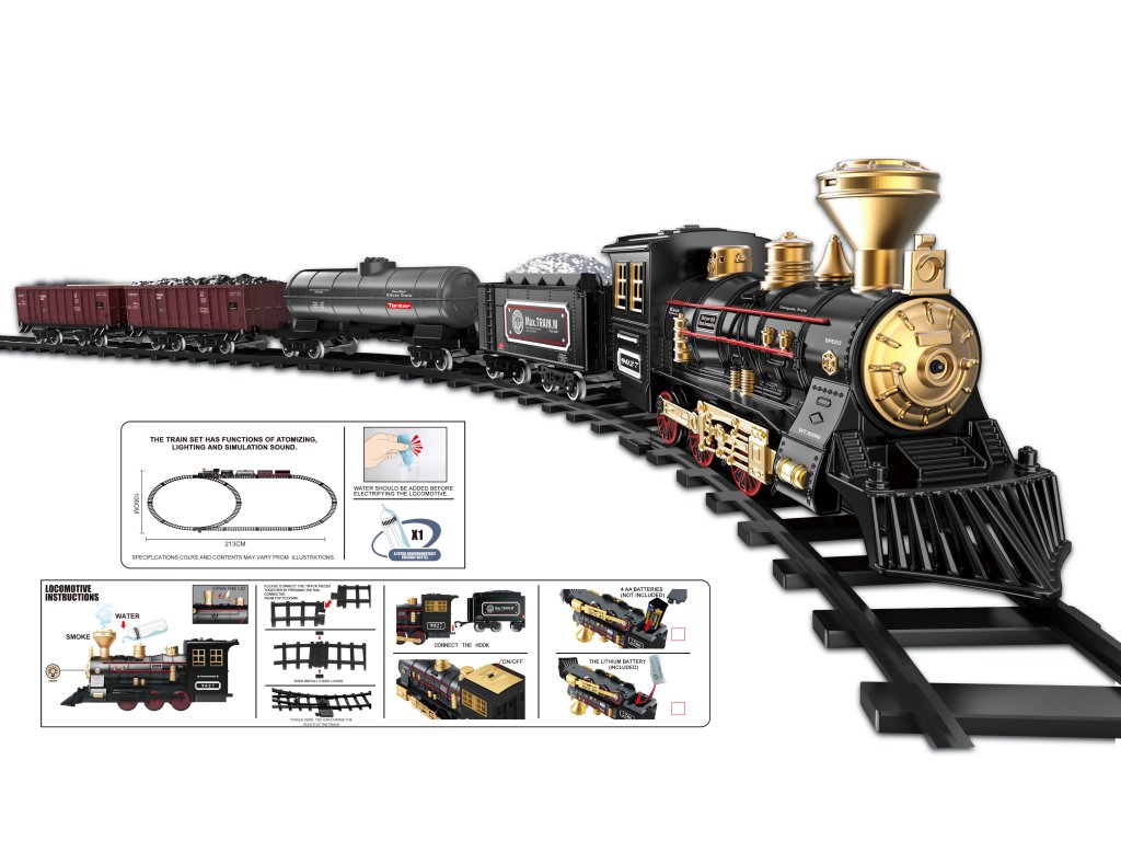 Pociąg z parową lokomotywą oraz realistycznymi dźwiękami. Lokomotywa podczas jazdy wypuszcza dym z komina (aby para była widoczna, należy najpierw wpuścić wodę do lokomotywy, w zestawie znajduje się pipeta). Podczas jazdy zapala się światło w przedniej części lokomotywy. Tor ma kształt elipsy o wymiarach 213 x 106 cm.