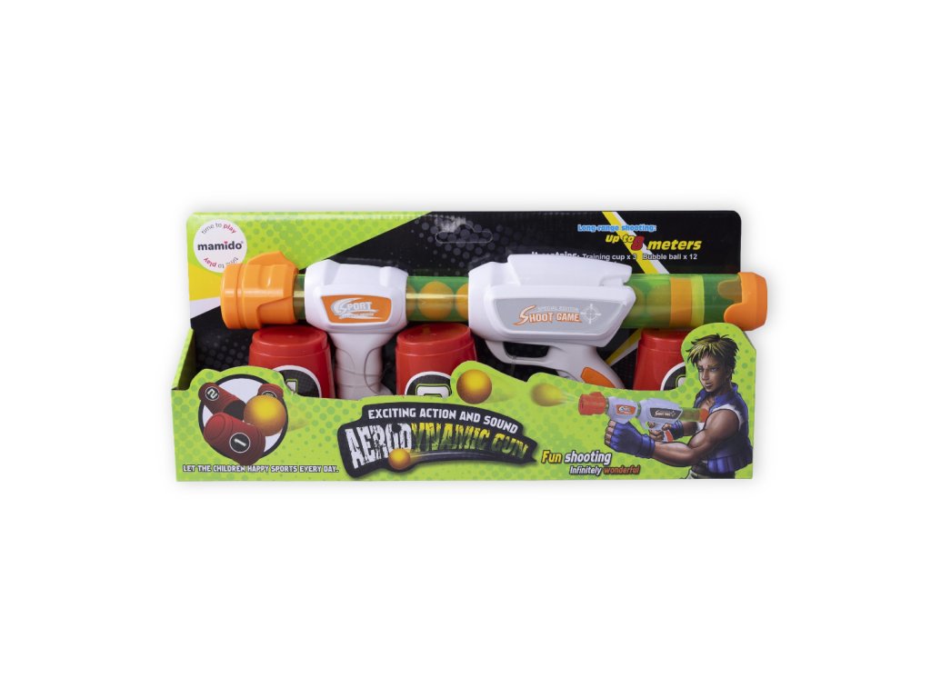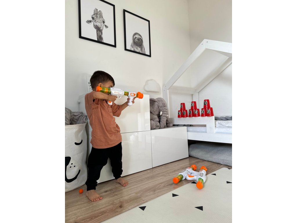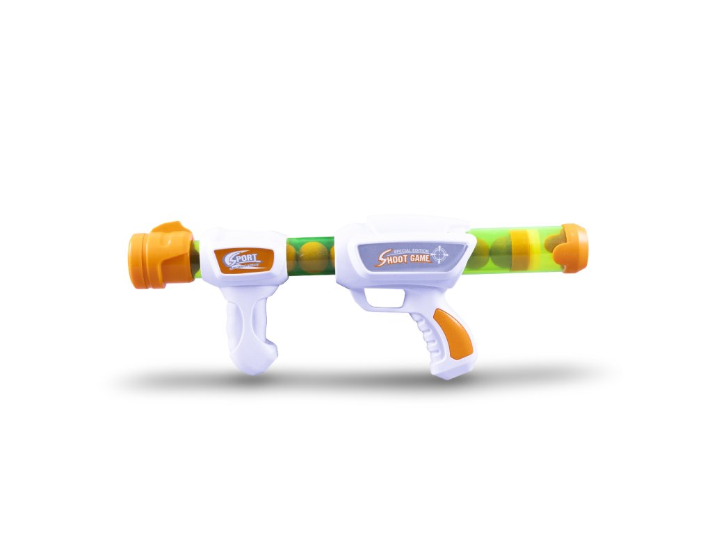 Pistolet potrafi wystrzelić kulkę na odległość do 8 m i jest bardzo łatwy w obsłudze. Wystarczy włożyć kulkę do otworu lufy, przesunąć lufę jak w pompie i strzelić! To ekscytująca zabawa, która z pewnością zachwyci każde dziecko.
