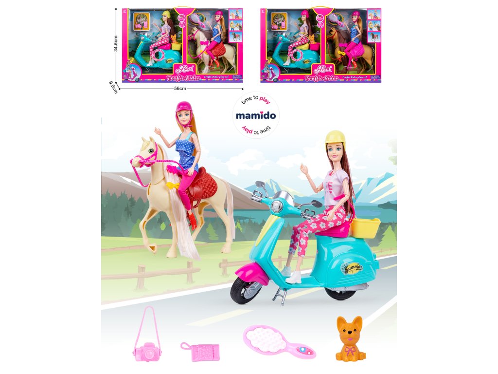 Duży zestaw z 2 lalkami, koniem i skuterem MT1181