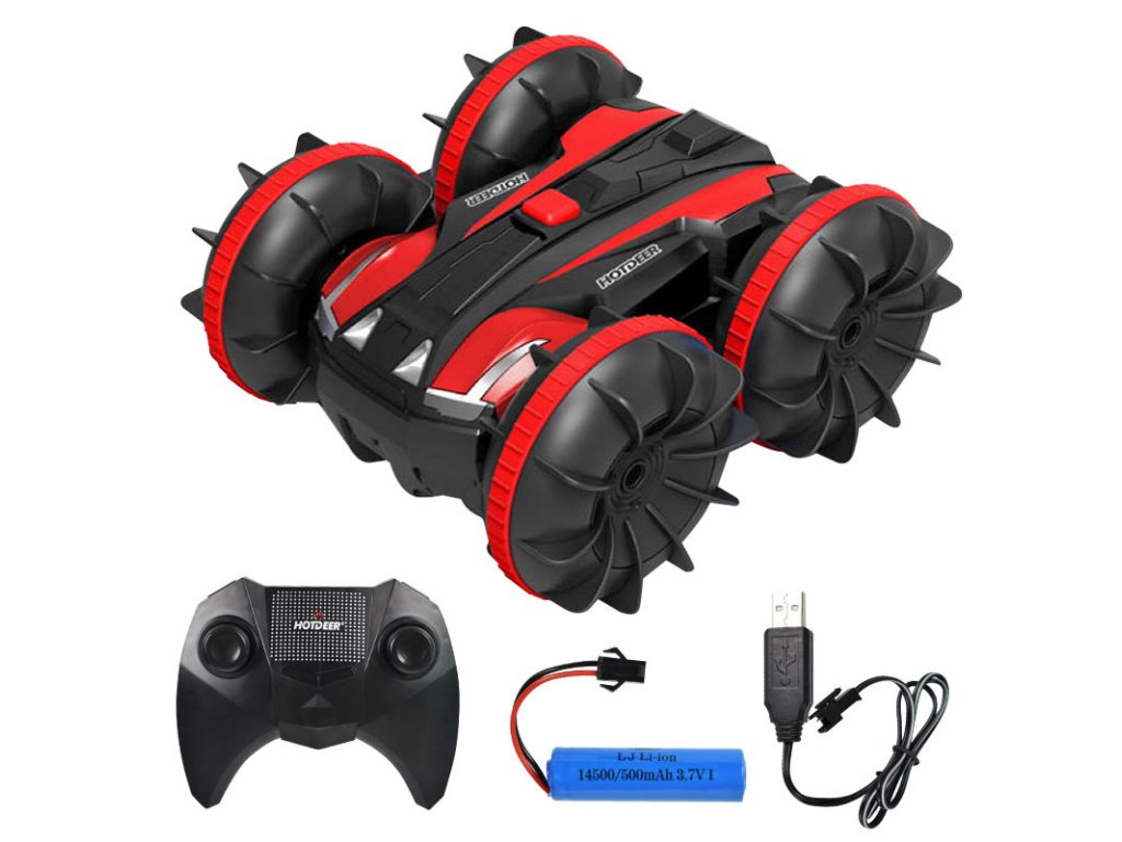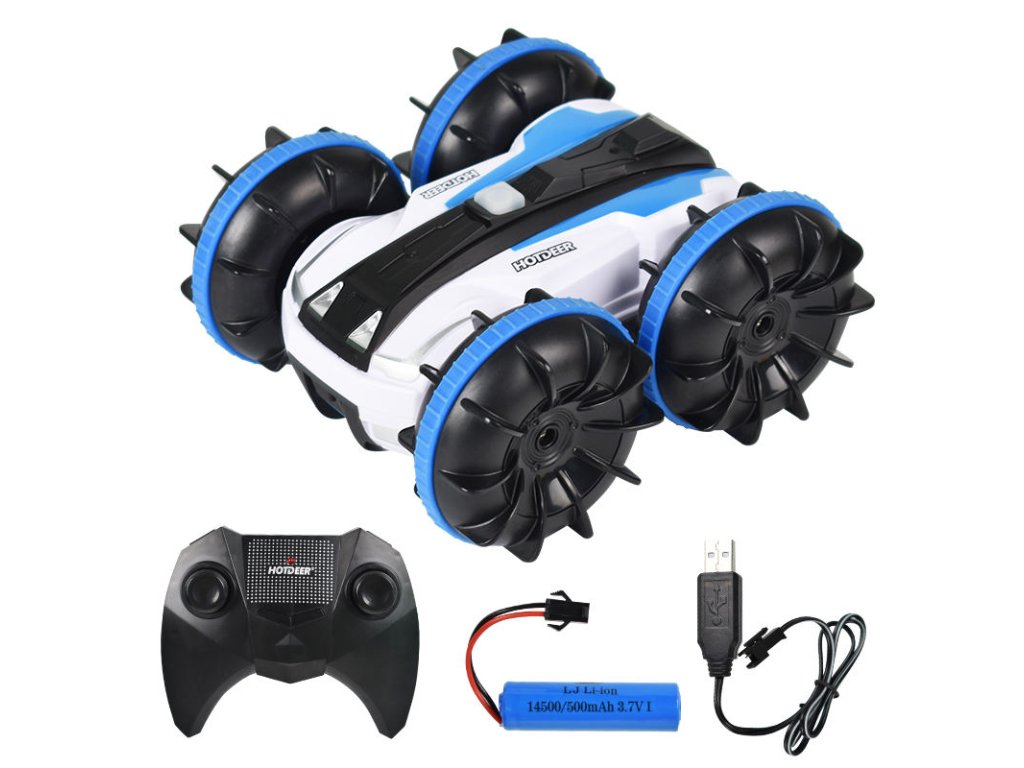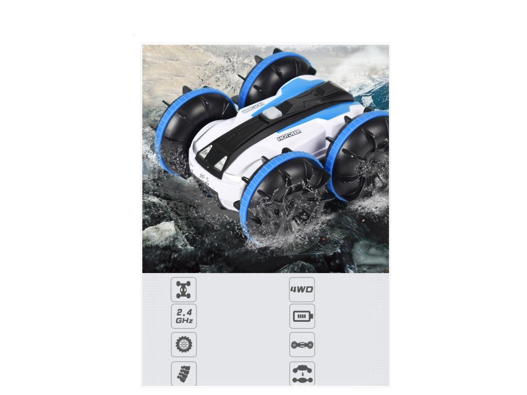 Wodoodporny RC Akrobatyczny Samochód: To zdalnie sterowane auto posiada wodoodporny gumowy pierścień, który chroni jego wewnętrzne części. Samochód wykonuje salta do przodu i do tyłu, jeździ obiema stronami oraz obraca się o 360° zarówno na wodzie, jak i na lądzie. Ciesz się płynną jazdą w każdym terenie.
