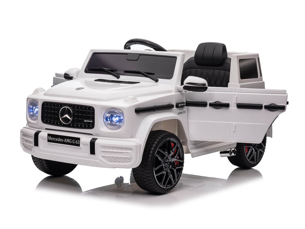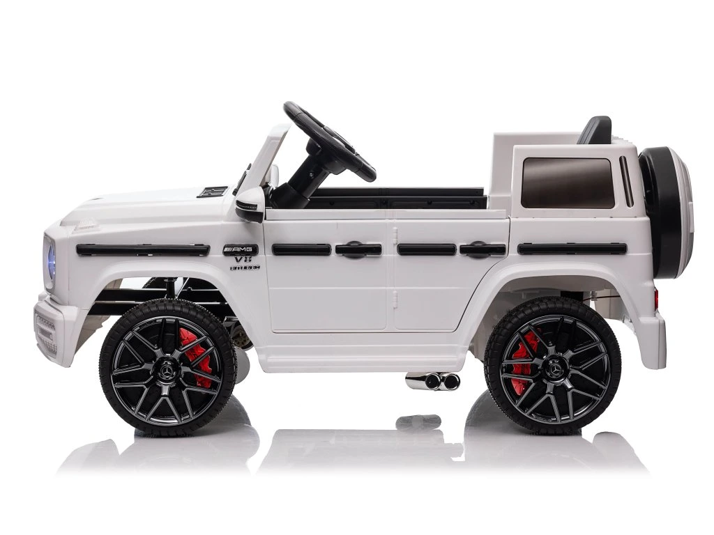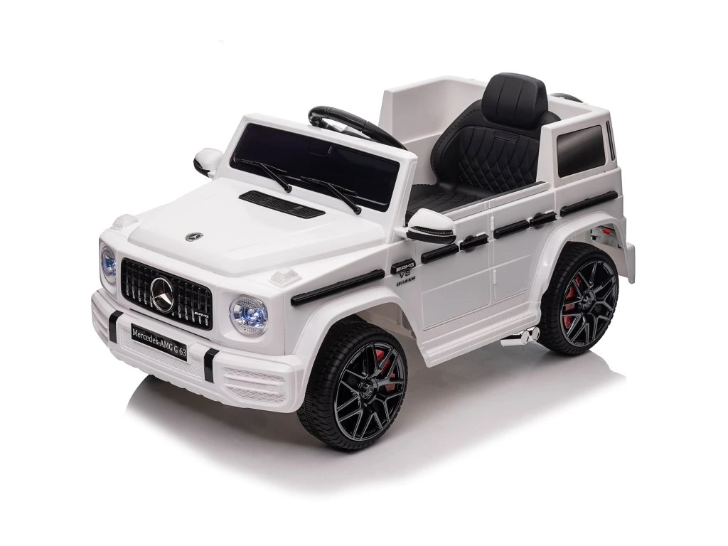 Dziecięce autko na akumulator Mercedes Benz G63 cabrio białe to idealny wybór dla małych miłośników luksusowych pojazdów. Z akumulatorem o pojemności 12V 4,5Ah i pilotem 2.4 GHz zapewnia bezpieczeństwo i kontrolę podczas każdej jazdy.