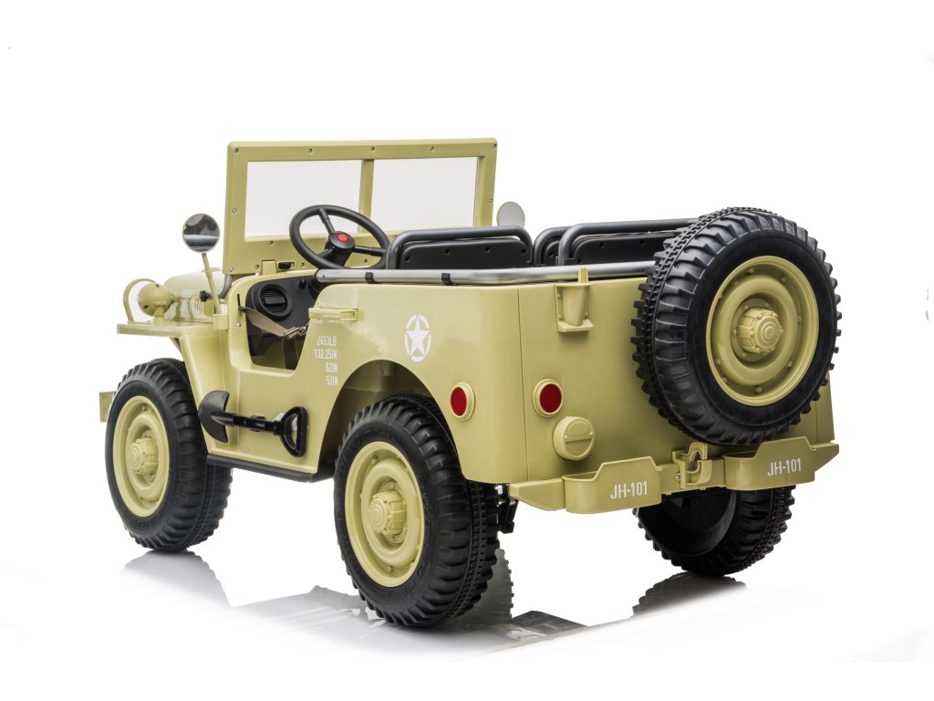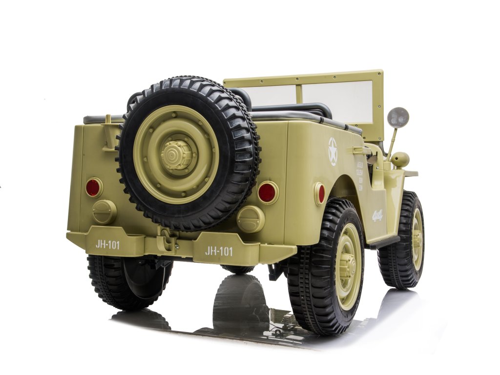 Dziecięcy wojskowy samochód elektryczny dzięki piankowym kołom Eva dopasuje się do różnych rodzajów nawierzchni. Dzięki napędowi na cztery koła dziecko może wyruszyć w teren. Samochód wojskowy ma nośność do 60 kg, dzięki czemu dziecko może zabrać swojego przyjaciela lub rodzeństwo. Podróż z pewnością umilą efekty dźwiękowe i świetlne. Na panelu muzycznym można korzystać z wejścia USB i SD, podłączenia MP3 lub Bluetooth.