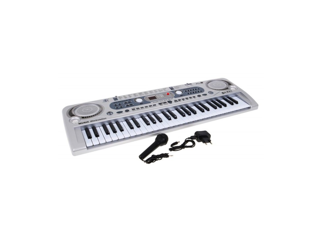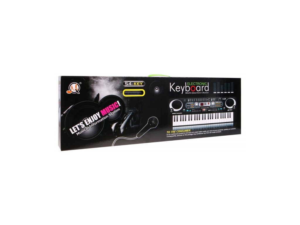 Keyboard to wielofunkcyjny instrument muzyczny, który rozwija wyobraźnię, poczucie rytmu, motorykę rąk i słuch. Pomaga również wzbudzić pasję do muzyki u małych miłośników dźwięków. Przenośne klawisze posiadają wiele funkcji, dzięki którym dzieci mogą czerpać ogromną radość. Zestaw muzyczny zawiera także mikrofon oraz zasilacz sieciowy. Klawisze oferują 2 programy nauki gry. Produkt przeznaczony jest dla dzieci powyżej 3 roku życia i posiada certyfikat CE.