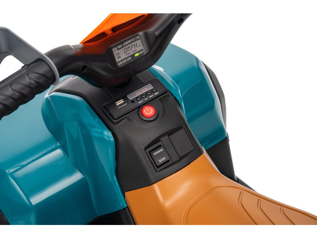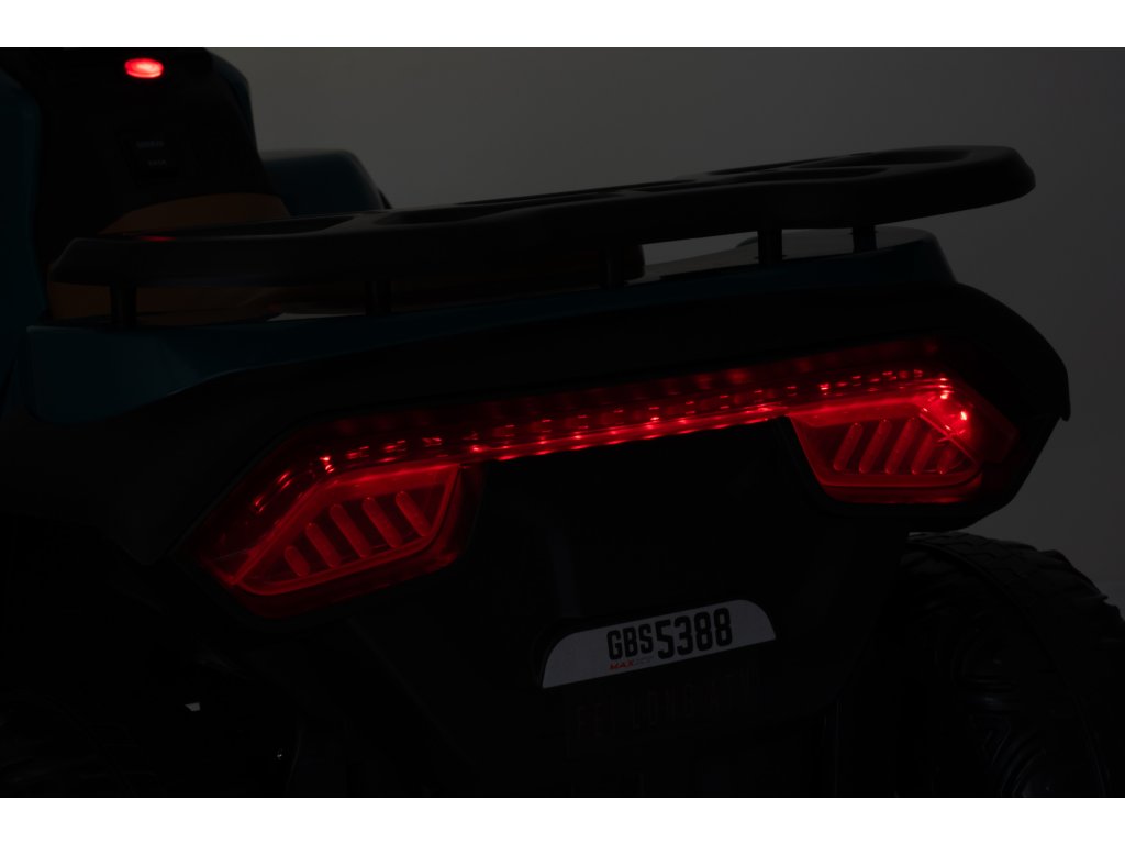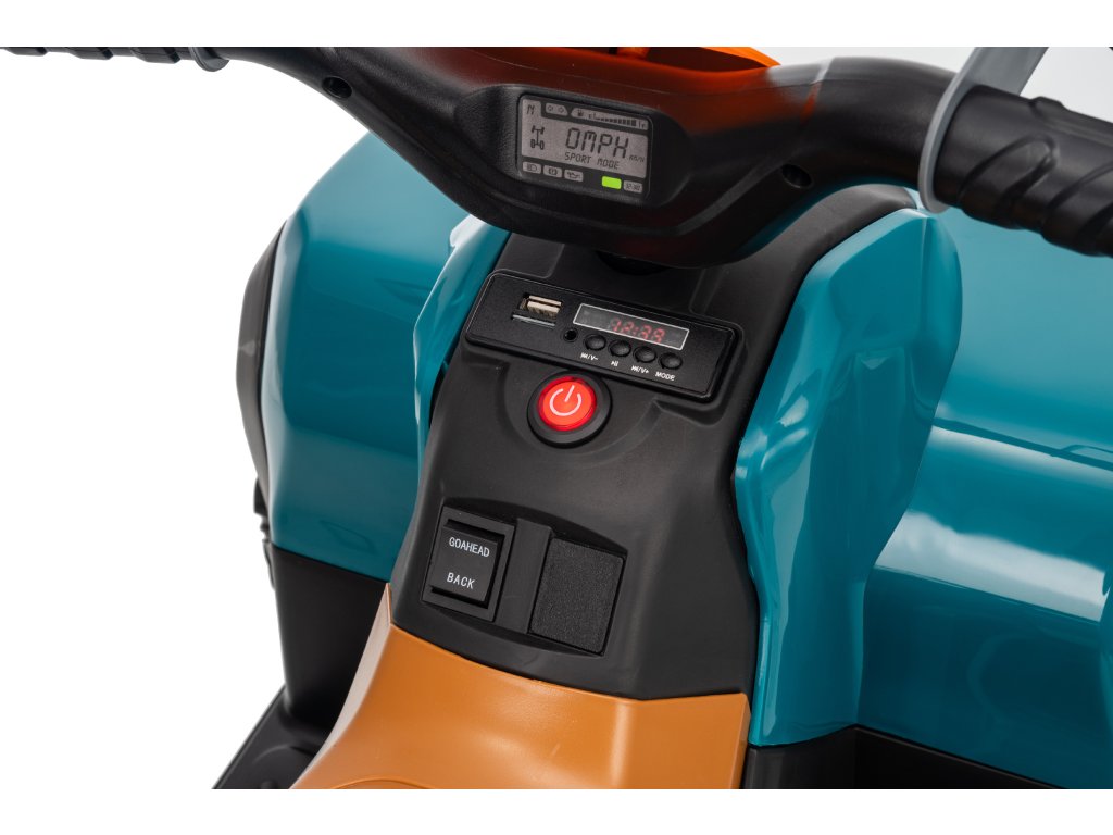 Wyposażenie obejmuje panel muzyczny z wejściami USB i MP3. Quad posiada przednie i tylne światła LED, umożliwia jazdę we wszystkich kierunkach, a jego ładowność wynosi do 30 kg.