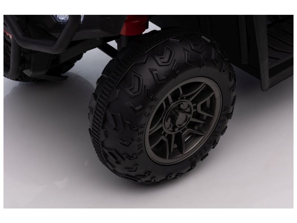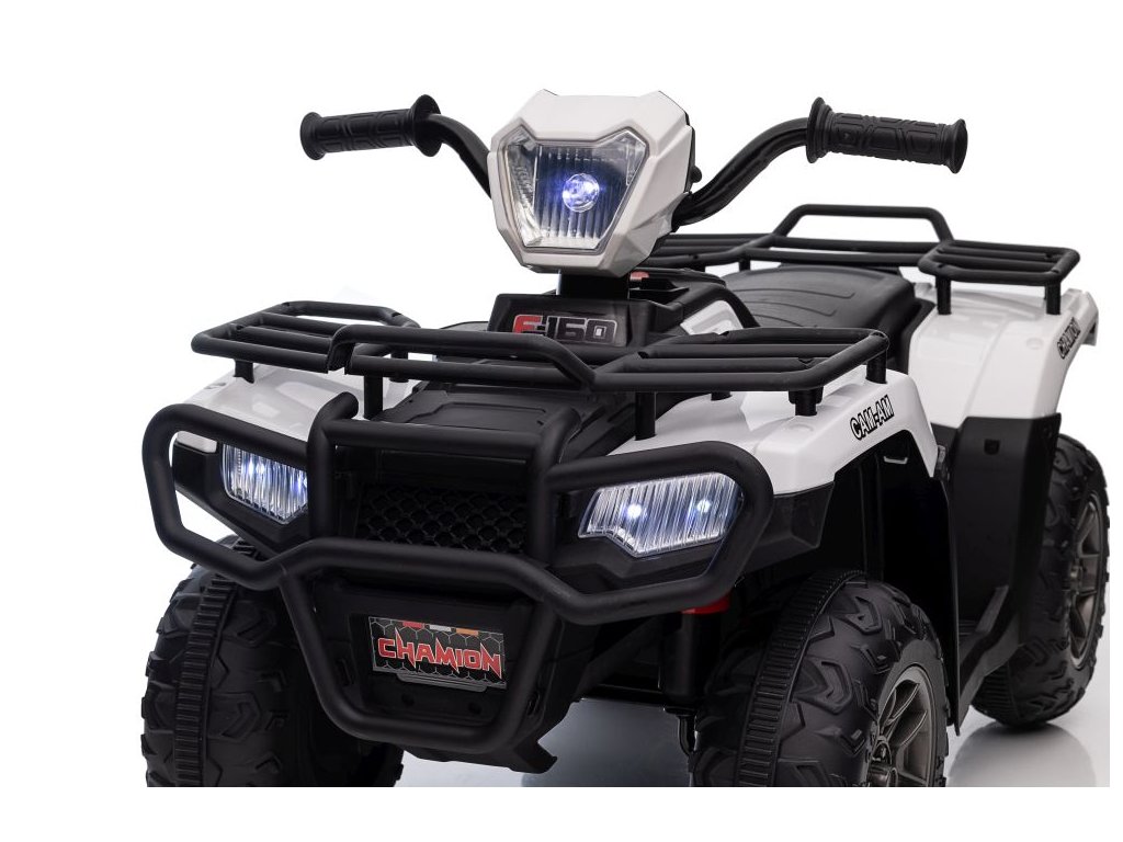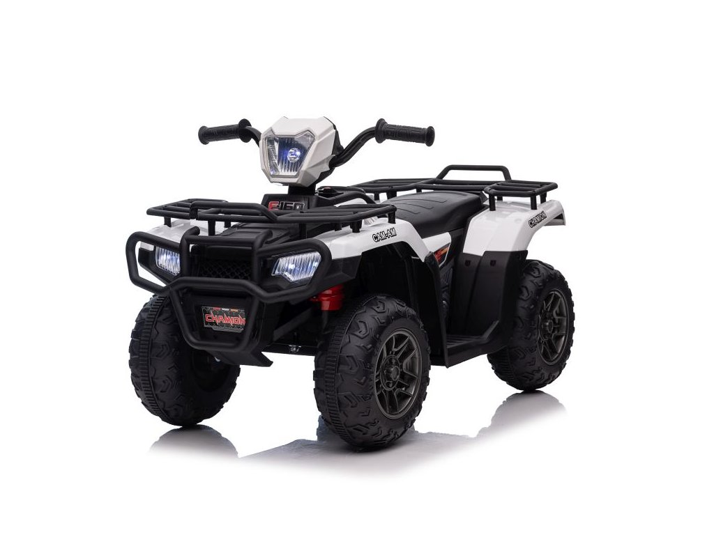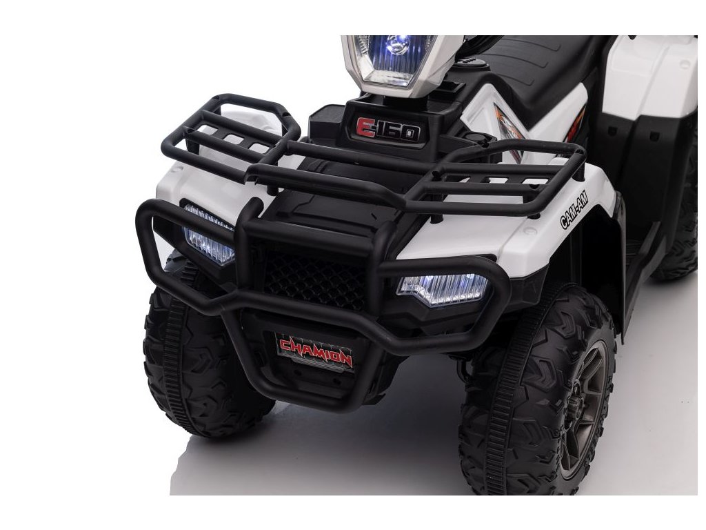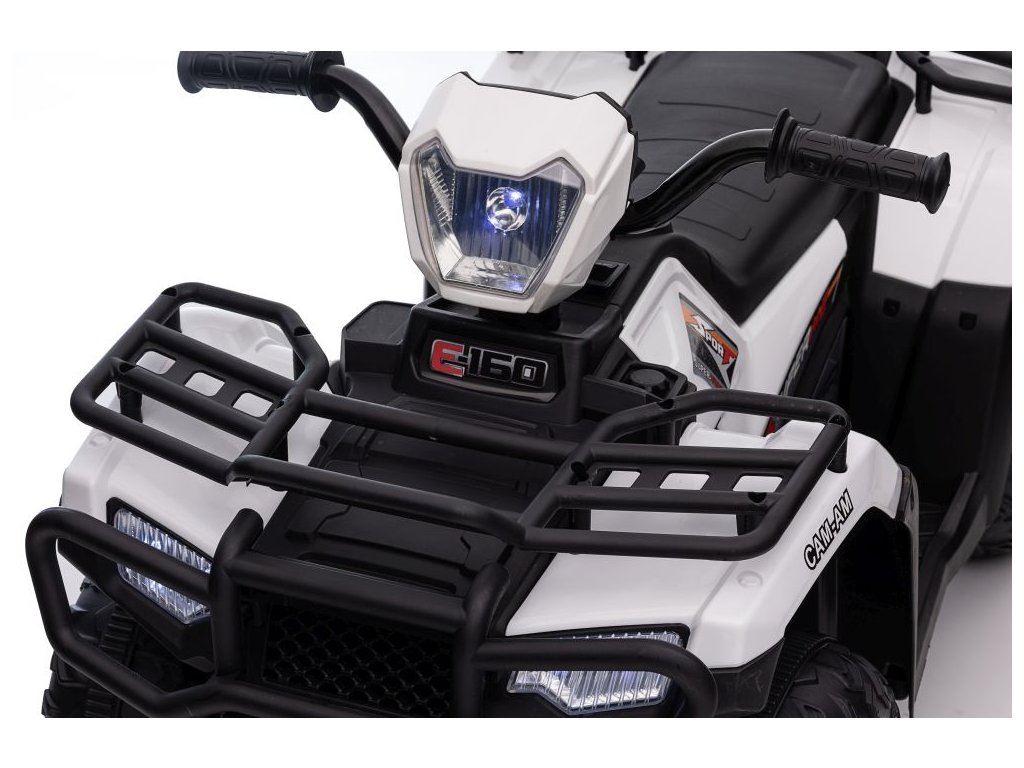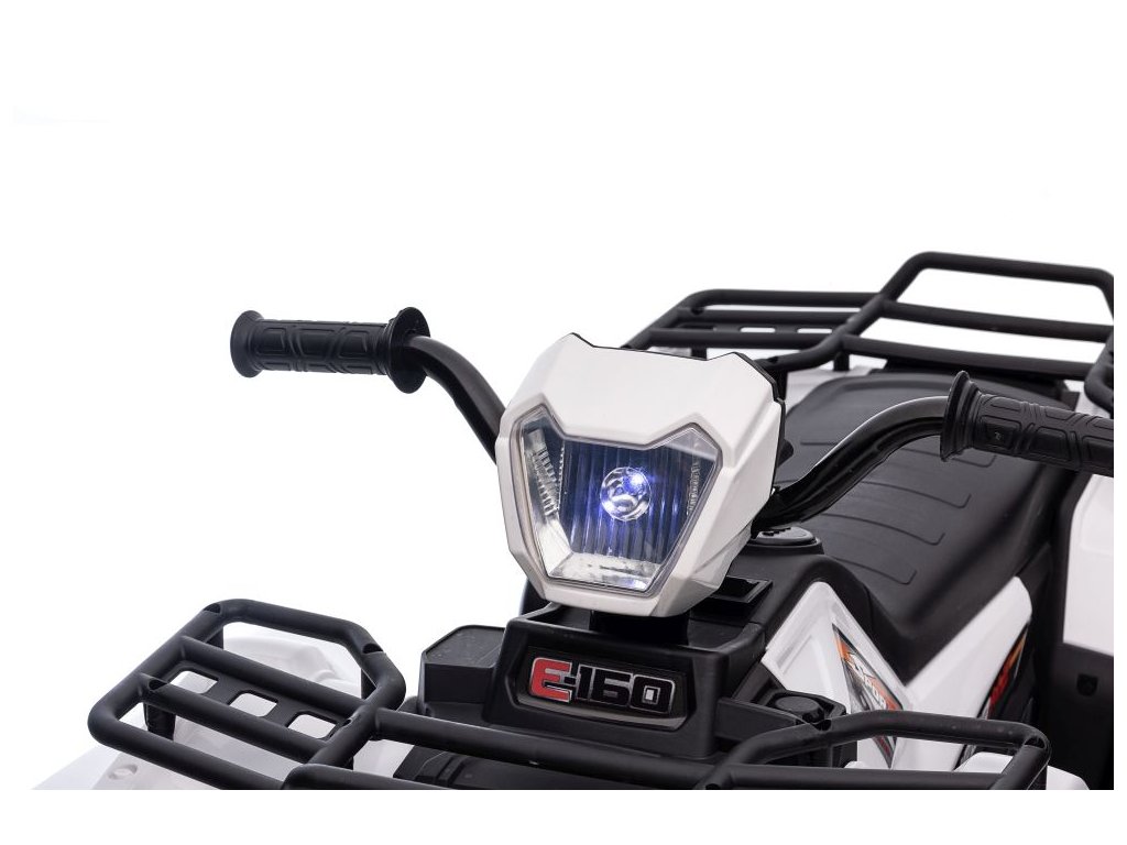 W wyposażeniu znajduje się panel muzyczny z wejściami USB i MP3. Quad posiada przednie światła LED, umożliwia jazdę we wszystkich kierunkach, a jego nośność wynosi do 25 kg.