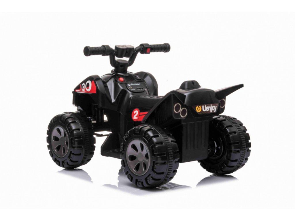Dziecięcy quad na akumulator dla mniej wymagających kierowców jest przeznaczony dla dzieci o maksymalnym udźwigu do 30 kg. Sterowanie odbywa się za pomocą przycisku na uchwycie.