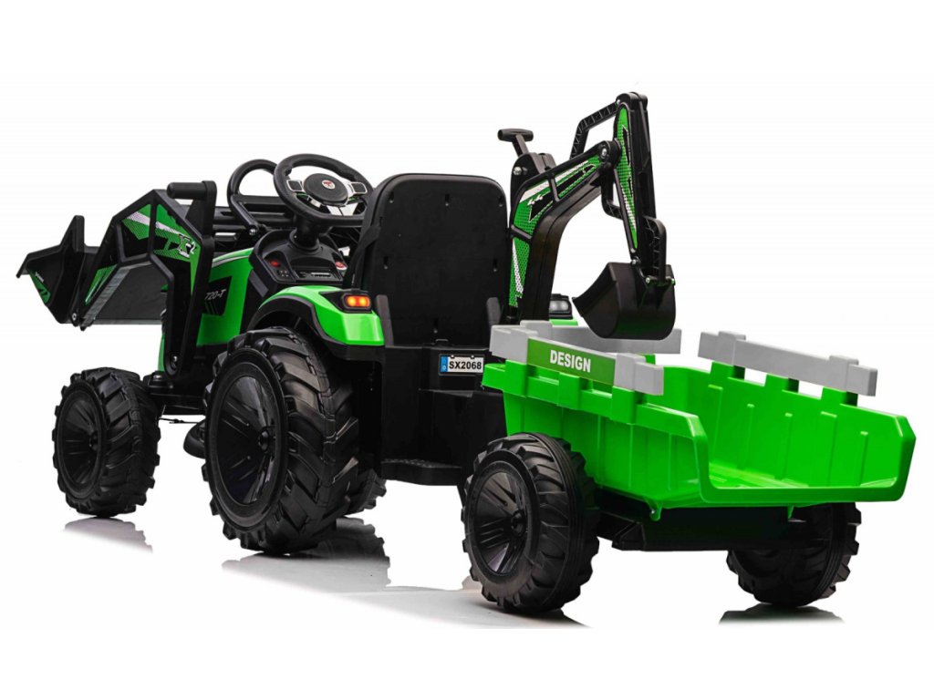 Dziecięcy traktor na akumulator koparka z przyczepą Strong RC EVA koła 12V10Ah zielony