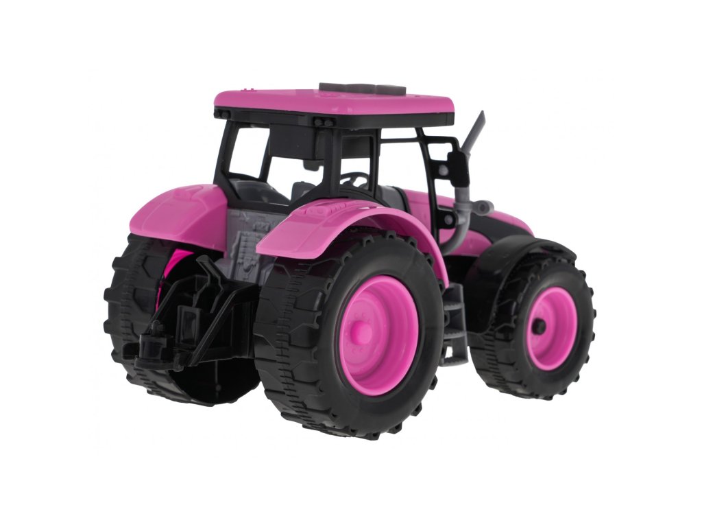 Różowy interaktywny traktor z funkcją dźwięku i światła dla dzieci od 3 lat. Traktor został wykonany z najwyższej jakości plastiku z niezwykłą dbałością o szczegóły. Mocowanie traktora można otworzyć, a na górze kabiny kierowcy znajdują się przyciski dźwiękowe, które po naciśnięciu wydają dźwięki cofania, klaksonu i uruchamiania silnika. Traktor posiada również dwa świecące światła LED.
