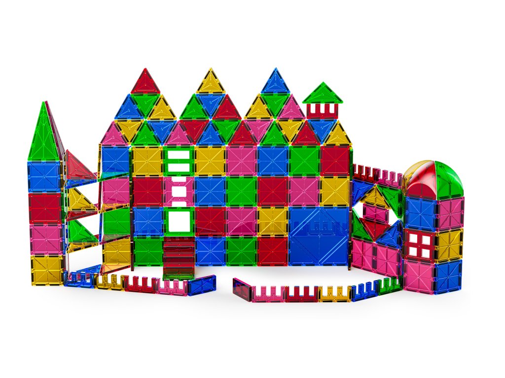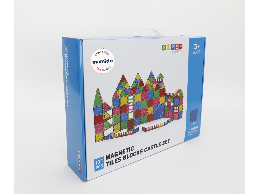 Zestaw zawiera 131 magnetycznych elementów w różnych kształtach i kolorach, dzięki którym dzieci mogą zbudować własny pałac, miasto lub fantazyjne budowle. Wszystkie elementy mają jednolity rozmiar 7,5 cm, łatwo do siebie pasują i mocno trzymają dzięki wysokiej jakości magnesom. Świetny wybór do zabawy w domu i zajęć grupowych.