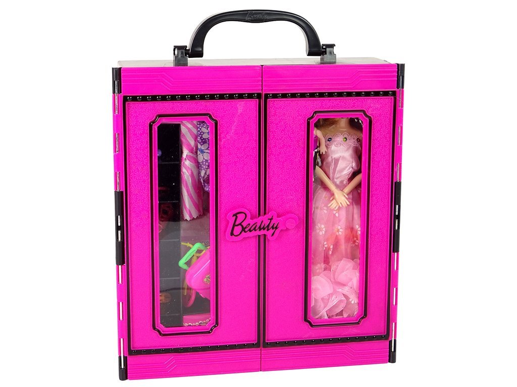 Duża garderoba z lalką to marzenie każdej młodej damy. Zestaw składa się z 30 zachwycających akcesoriów. Garderoba dla lalki posiada uchwyt do przenoszenia, dzięki czemu dziecko może zabrać ją ze sobą wszędzie. Zabawa tym zestawem nauczy dziecko utrzymywania porządku w swoim pokoju.