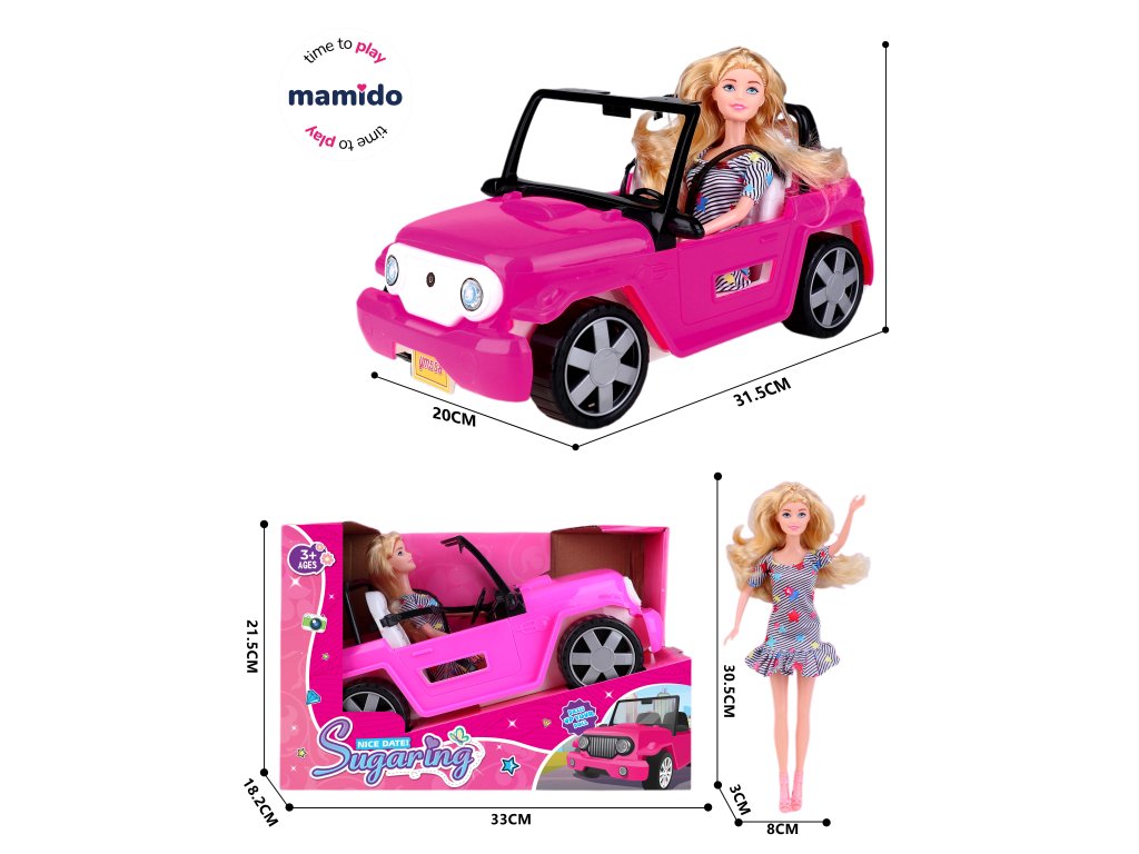 Lalka z samochodem różowa, blondynka MT1248