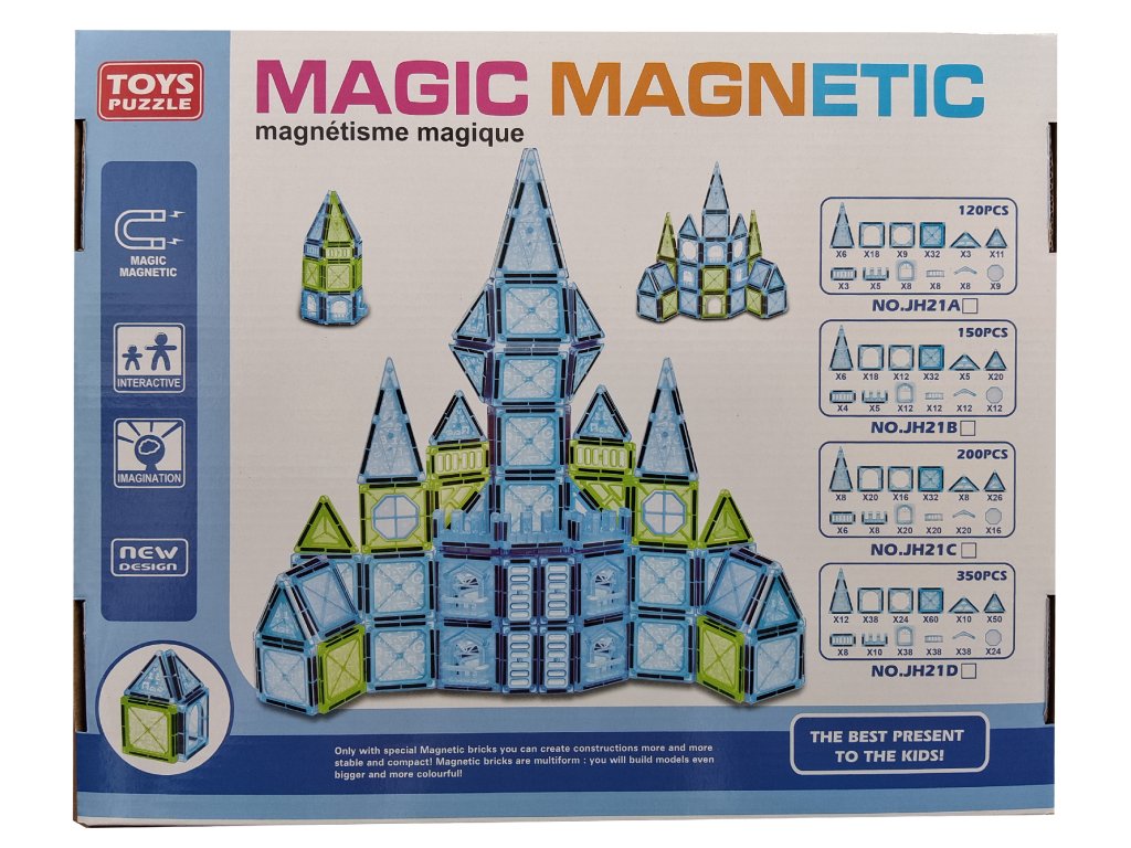 Zbuduj swój własny zamek, wieże lub kolorowe domy z magnetycznego zestawu konstrukcyjnego składającego się z 200 elementów. Dzięki silnym magnesom elementy łatwo się łączą i mocno trzymają razem, dzięki czemu konstrukcje są stabilne i wytrzymałe nawet podczas zabawy.