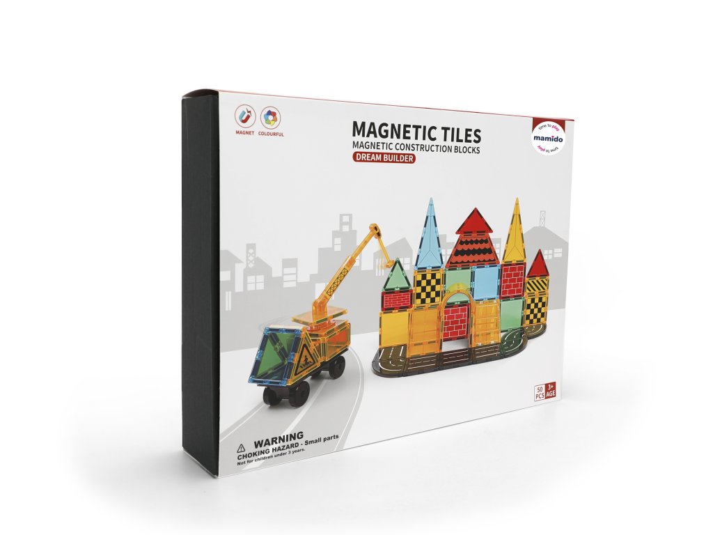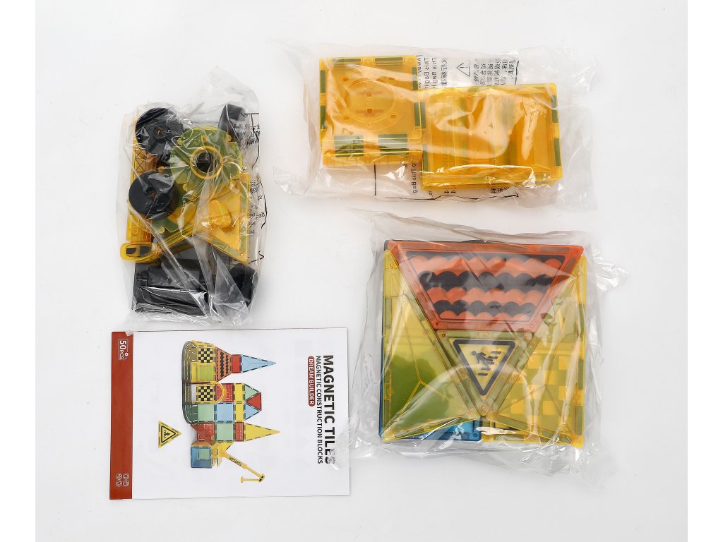 Wyrusz w świat transportu i budownictwa dzięki oryginalnemu zestawowi magnetycznemu, składającemu się z 50 elementów. Dzieci mogą zbudować całe miasto z drogami, znakami, budynkami i pojazdami. Kolorowe magnetyczne elementy łatwo się łączą i pozwalają tworzyć nieskończone kombinacje od prostych konstrukcji po rozbudowane sceny transportowe. Zestaw zawiera również samochody z podwoziem na kółkach, znaki drogowe, dźwig i inne akcesoria, dzięki którym zabawa nabiera realistycznego charakteru.