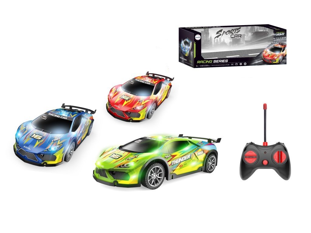 Samochód wyścigowy RC 1:16 zachwyci każdego małego kierowcę. Dzięki łatwemu sterowaniu porusza się do przodu, do tyłu, w lewo i w prawo, a także posiada efekty świetlne, które nadają jeździe prawdziwy charakter wyścigów. Samochód ma atrakcyjne wzornictwo w stylu wyścigowym i jest dostępny w kilku wariantach kolorystycznych.