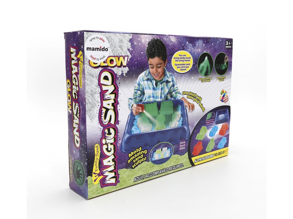 - Zawartość piasku: 500 g (świecący piasek kinetyczny)